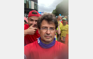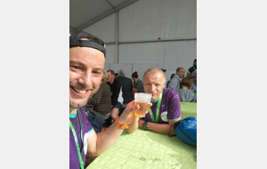 Veille du Jour J : retrait des dossards, sauf pour notre président , en effet son dossard avait déjà été attribué à un autre participant . Après un petit moment de frayeur, tout s'arrange , on lui octroie un autre numéro de dossard, affaire réglée ! ouf….