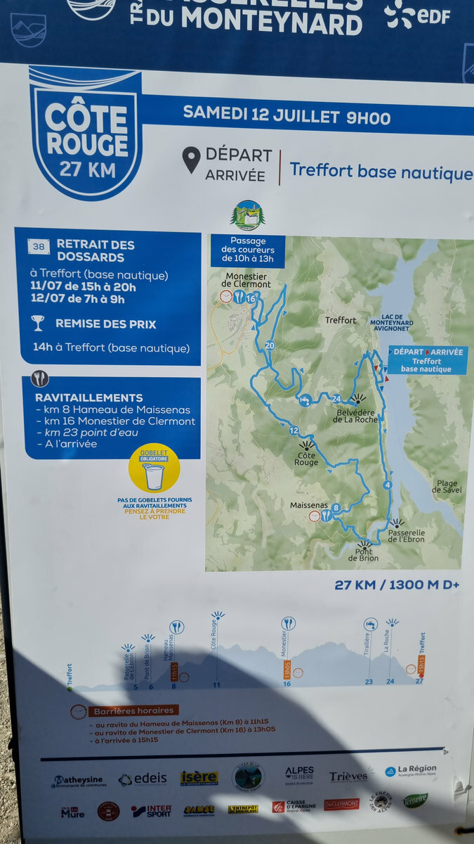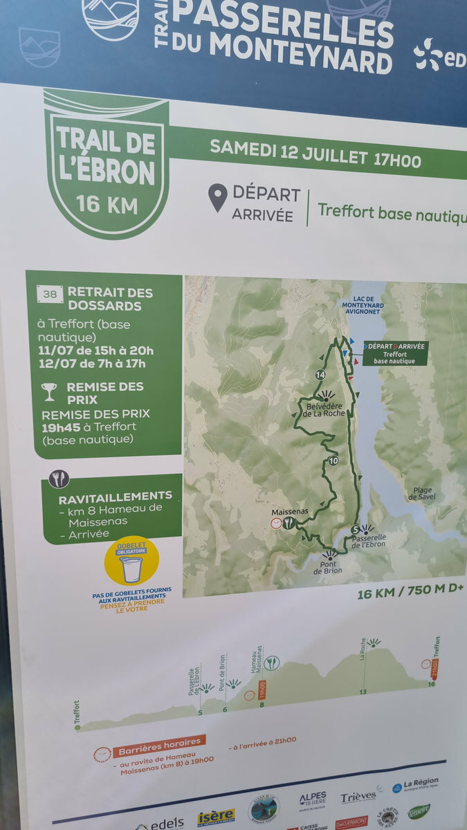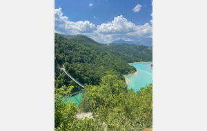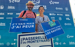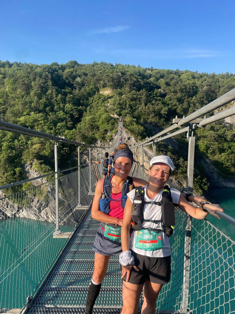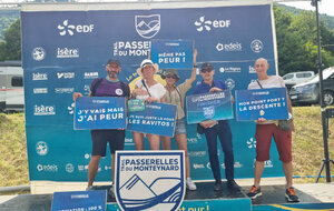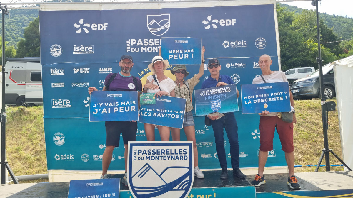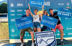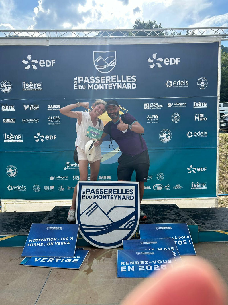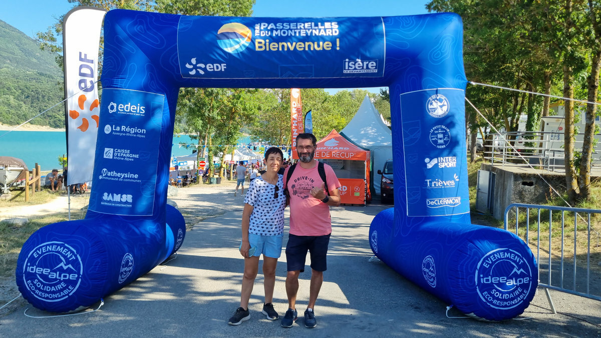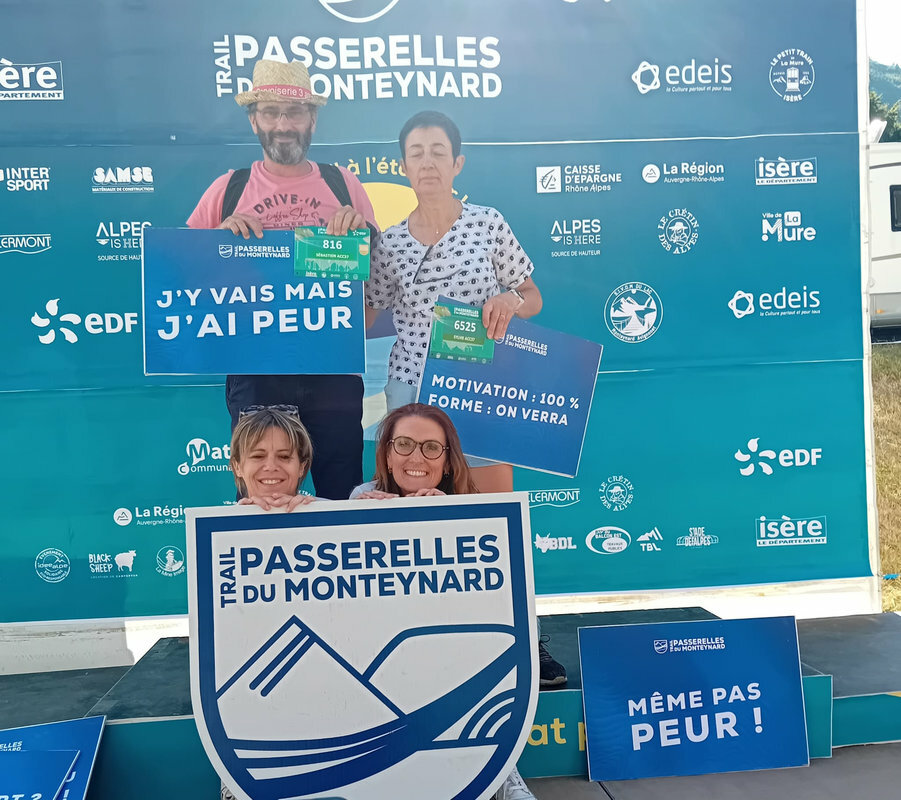 Ce week-end des 12 et 13 juillet le Trail des Passerelles 2025 où 8 adhérentes et adhérents ont défié les montagnes des Alpes à Monteynard en Isère, avec Nicole et Philippe en guise de supporters pour nous photographier dans différents endroits et les fameuses passerelles. Passerelles de l'Ebron 180m de long, 1,20 de largeur et a une hauteur de 45m à 85m selon le niveau de l'eau, et la passerelles de la Drac 220m de long, 1,20 de large idem pour la hauteur. Bravo a toutes et tous